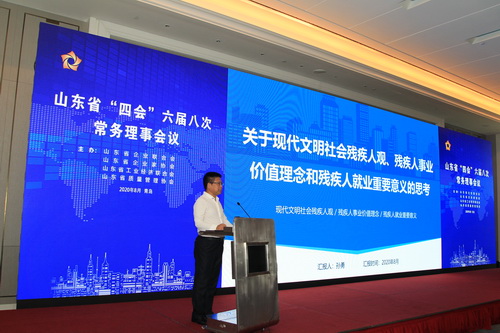 会议邀请到山东省残疾人就业指导中心孙勇主任作残疾人就业政策解读,宣传助残就业和惠企政策,促进残疾人就业创业,树立企业扶弱助残社会形象。孙勇主任阐述了当前我省残疾人就业形势和做好残疾人就业工作的重要意义,从宏观和微观的角度分析就业对残疾人、企业和社会发展的深远影响。山东省残疾人就业指导中心就业指导科副科长黄苇介绍了完善残疾人就业保障金制度,更好促进残疾人就业的具体政策。与会企业家纷纷表示要认真学习有关政策,理解残疾人就业的重要意义,积极安置残疾人就业,营造良好社会氛围,促进社会文明和谐。